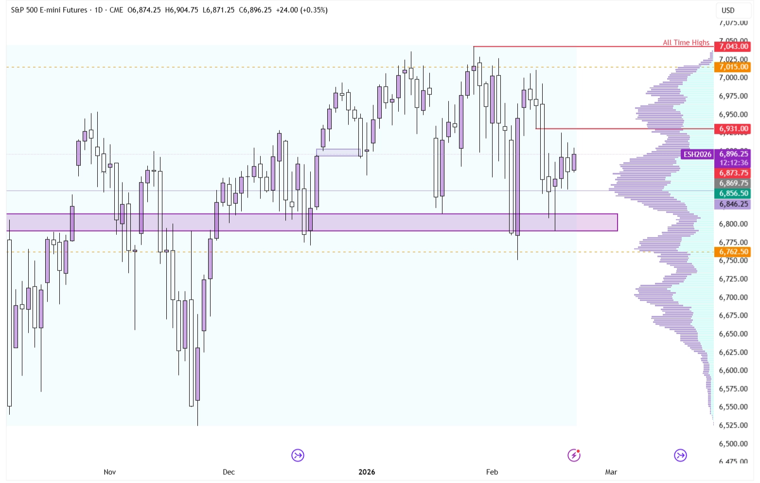 In short, the S&P is stuck between two levels with a very slight bearish bias on the Daily timeframe.