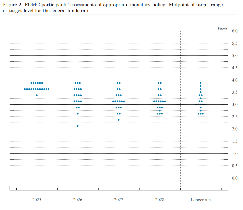 The December 2025 ‘Dot Plot’ indicating where all FOMC members think the interest rates will be at the end of the stated year