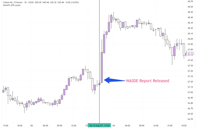 このレポートには、コットンの世界的な生産量、消費量、貿易量、価格予測が詳しく記載されています。公表された数値が市場予想と乖離すると、短期的なボラティリティを引き起こす要因となるため、市場参加者は予測の修正がないかをWASDEレポートでチェックしています。